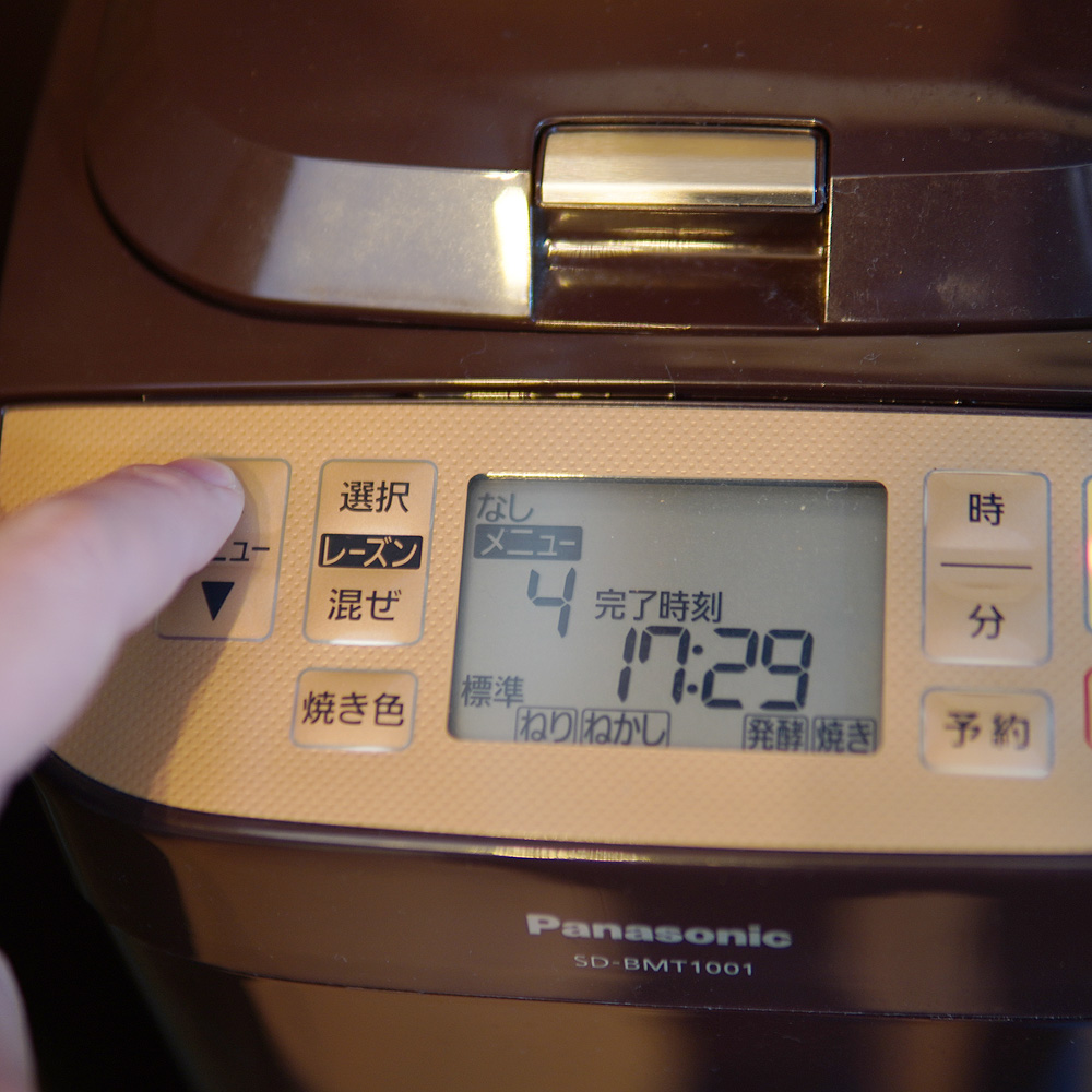 蓋をして【メニュー】を押して、4番(食パン)の番号にセットします。