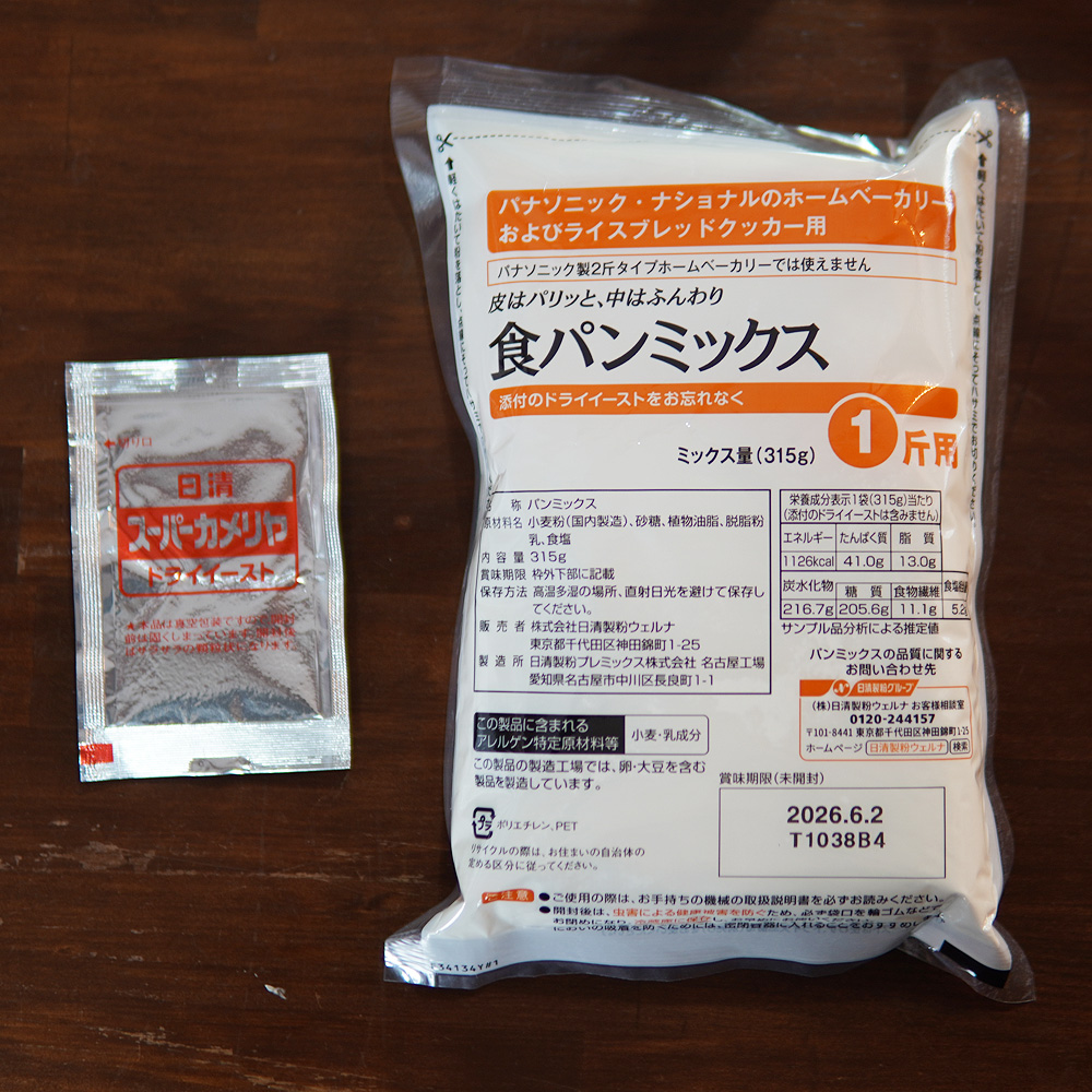 楽天市場でパナソニックのホームベーカリー専用の食パンミックスが販売されているのでいつもそちらを購入しています。